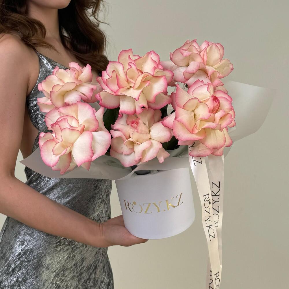 Роза Голландская - 7 шт. Упаковка дизайнерская - 2 шт. Оазис флористический - 1 шт. коробка шляпная размер xs - 1 шт.