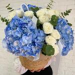 Эвкалипт - 1 шт. Кашпо - 1 шт. гортензии - 3 шт. спрей розы - 6 шт.