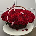 Роскошная композиция из красных роз в элегантной плетёной корзине. Идеальный выбор для выражения пылких чувств, признания в любви или эффектного поздравления.
