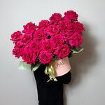 Композиция в коробке L из малиновых роз