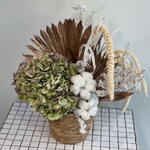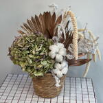 Оазис флористический - 1 шт. Хлопок натуральный - 3 шт. Аспарагус заснеженый - 1 шт. гортензия сухоцвет - 1 шт. лист пальмы сухоцвет - 2 шт. пампас сетария - 5 шт.