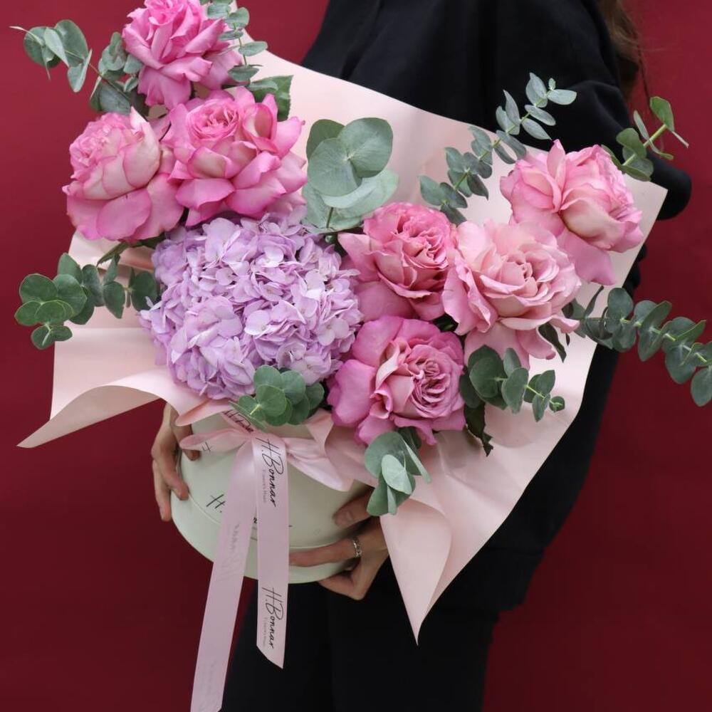 Гортензия - 1 шт. Эвкалипт - 1 шт. Роза - 7 шт.