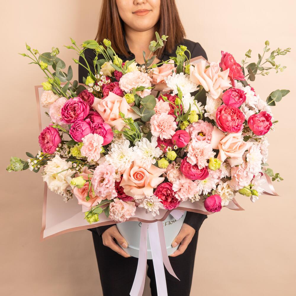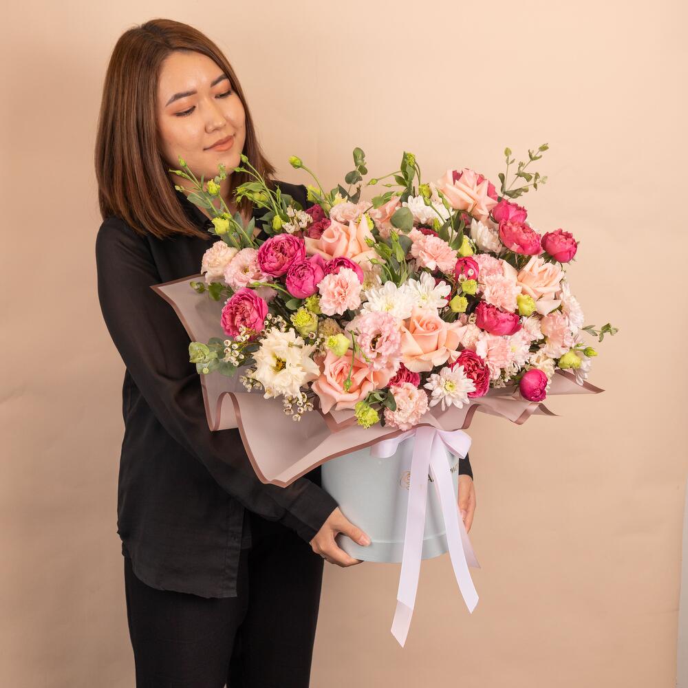 Композиция выполнена из ароматных и экзотических цветов, наши профессиональные флористы сумели придать нежность и насыщенность, чтобы вы смогли порадовать своих родных и близких.