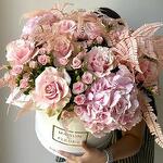 Гортензия - 2 шт. розы - 13 шт. кустовые розы - 5 шт. стабилизированый папоротник - 2 шт.