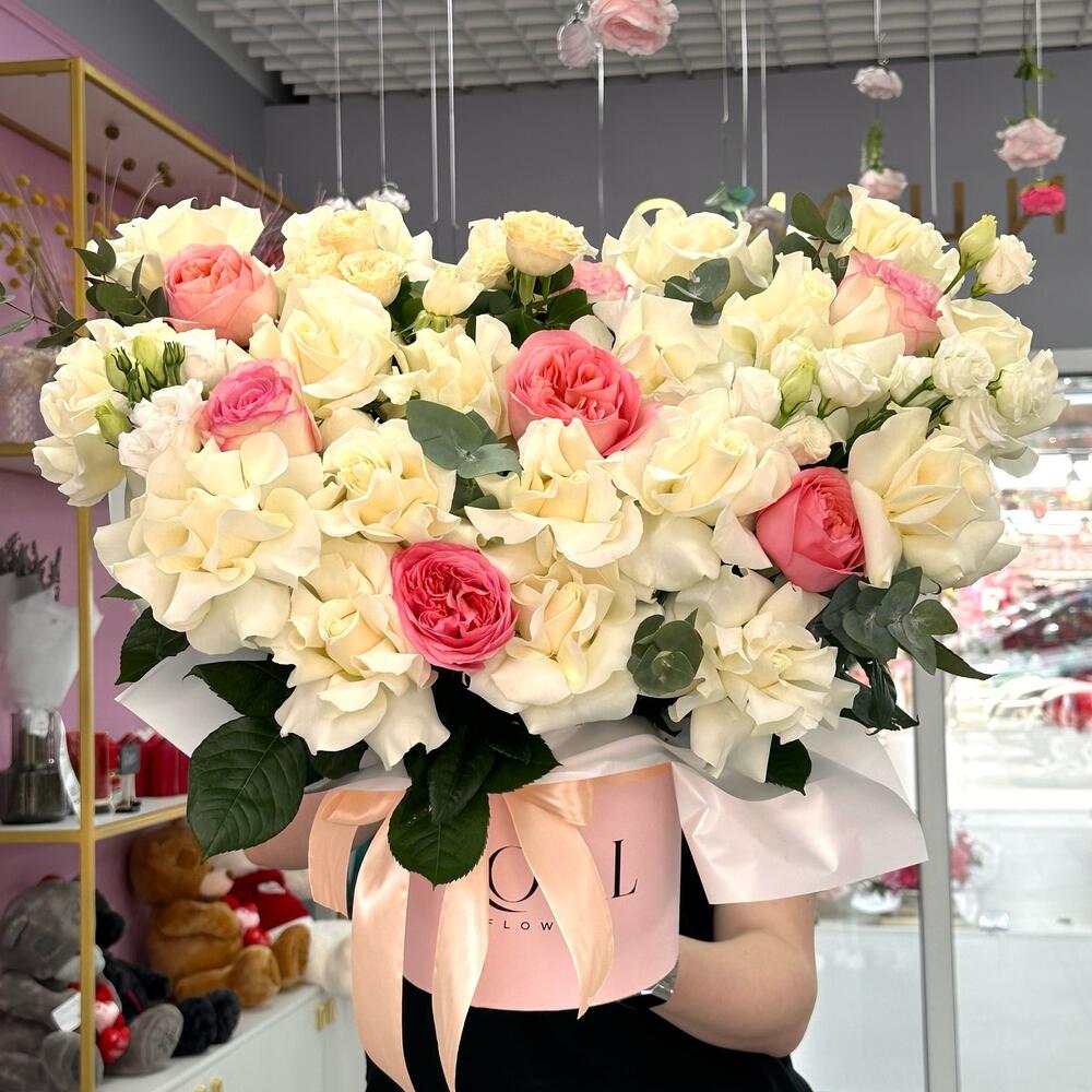 Пионовидная роза - 4 шт. розы - 22 шт. кустовые розы - 2 шт.