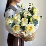 Эвкалипт - 1 шт. Эустома - 4 шт. пионовидные розы - 9 шт.