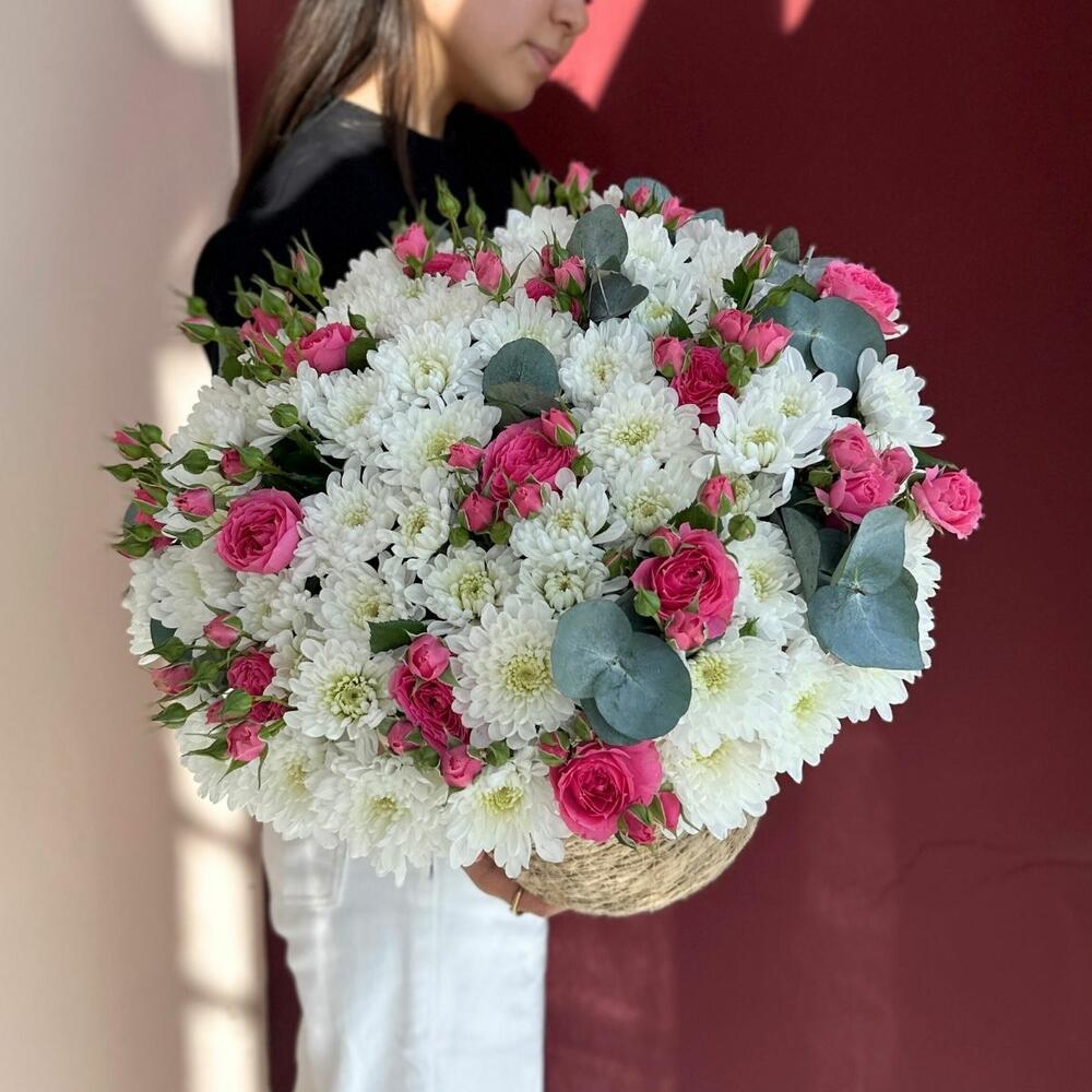 Эвкалипт - 1 шт. хризантемы - 5 шт. кустовые розы - 5 шт.
