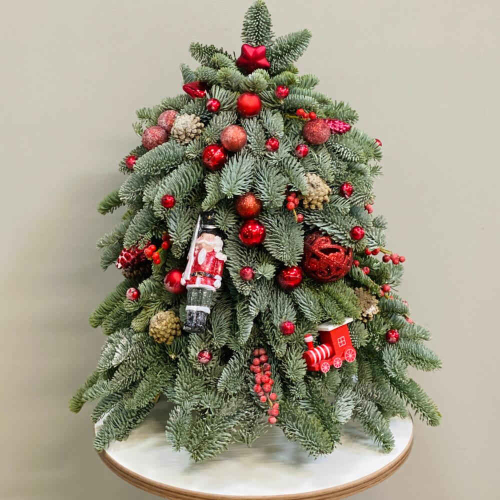Кашпо - 1 шт. Шишка - 10 шт. Нобилис - 4 шт. Машина - 1 шт. Ветка - 5 шт. шарик маленький - 15 шт. шарик средний - 3 шт. игрушка солдат - 1 шт.