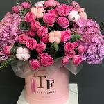 Композиция с Королевскими Гортензиями и пионовидной спрей розой