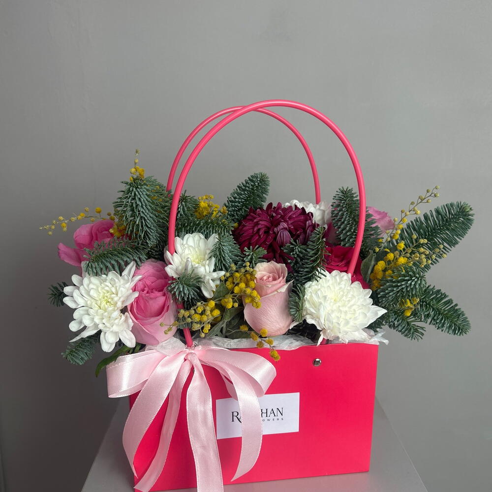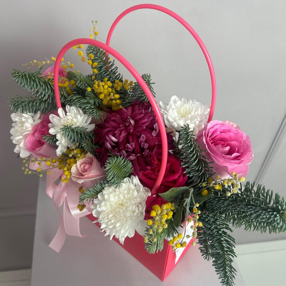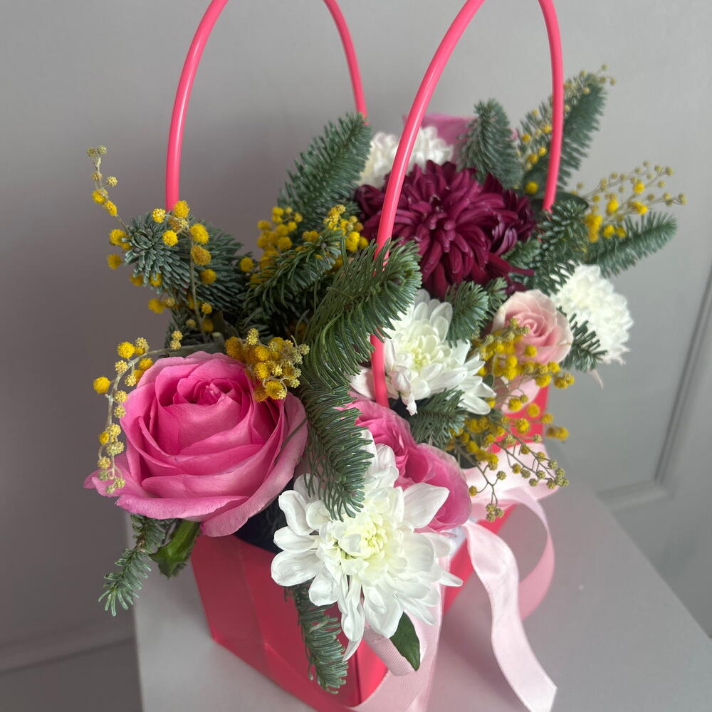 Мимоза - 3 шт. Роза - 7 шт. Хризантема - 1 шт. Нобилис - 1 шт.