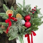 Новогодний декор - 3 шт. Нобилис - 3 шт. Оазис флористический - 1 шт. Ветки илекса - 1 шт. чаша под оазис - 1 шт. сушенный мандарин - 2 шт.