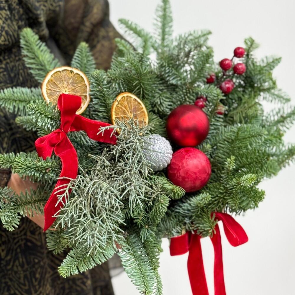 Насладитесь атмосферой зимней сказки с нашим праздничным оформлением. Свежая хвоя, гармоничные акценты и тёплые рождественские оттенки создают настроение домашнего уюта и предвкушения чудес. Идеально для подарка, украшения дома или создания праздничного настроения заранее. Подойдёт как для Нового года, так и для Рождества.