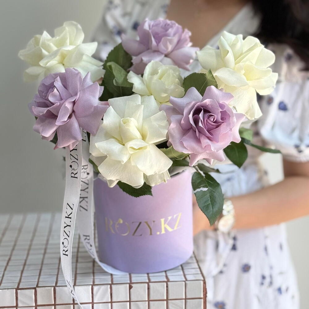 Роза Голландская - 7 шт. Упаковка дизайнерская - 2 шт. Оазис флористический - 1 шт. коробка шляпная размер xs - 1 шт.