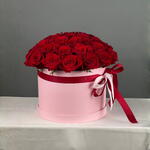 35 красных роз в коробке — насыщенно, ярко и чувственно.