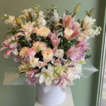 Классный магазин, буду заказывать тут еще. Единственный момент - гортензия была с темными участками, пришлось местами вручную убрать. Спасибо менеджеру, что заменили неподходящий цветок, букеты в жизни такие же очаровательные❤️