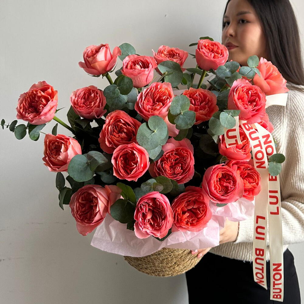 Эвкалипт - 3 шт. пионовидные розы - 23 шт.