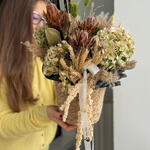 Амариллис - 1 шт. Пшеница - 20 шт. Лагурус - 10 шт. камыш декоративный - 3 шт. гортензия сухоцвет - 3 шт. протея сухоцвет - 3 шт. пампас сухоцвет - 5 шт.