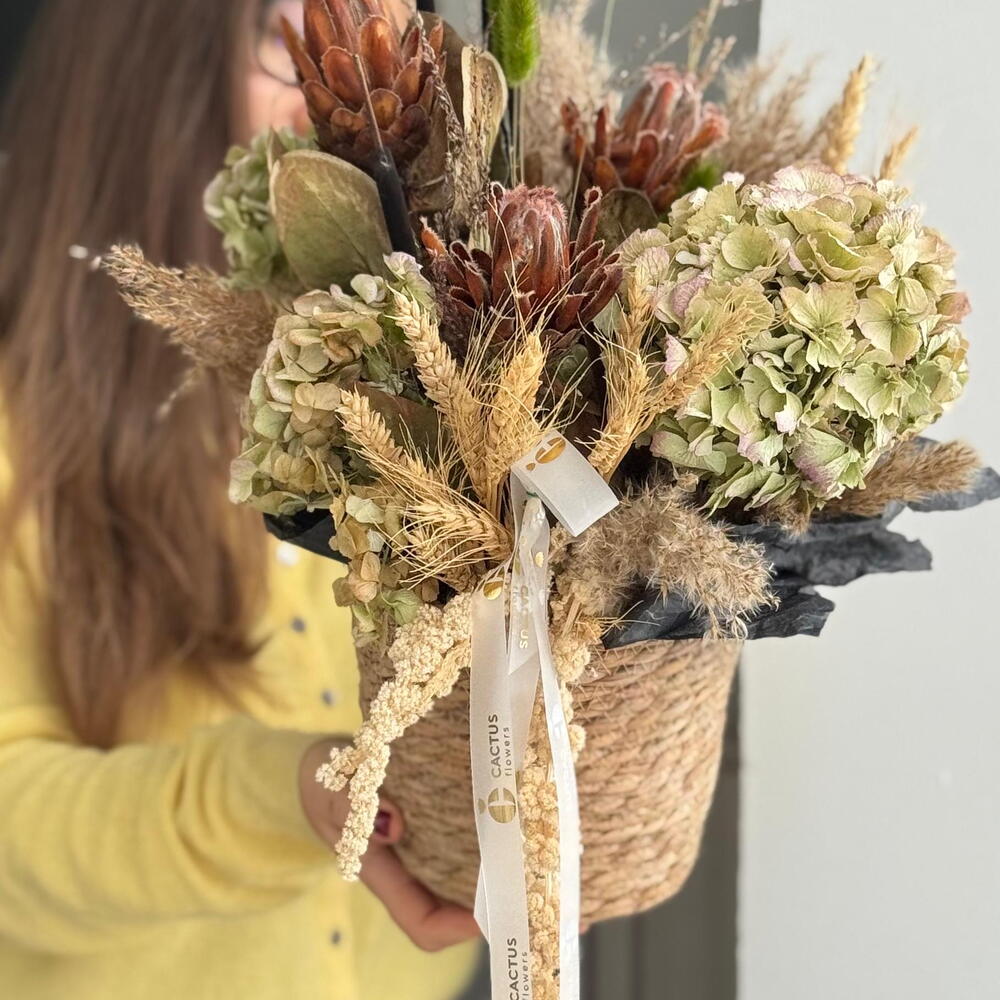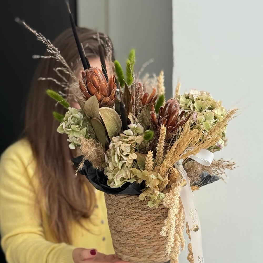 Композиция в кашпо из сухоцветов
