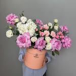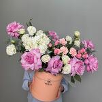 Гортензия - 1 шт. Эвкалипт - 3 шт. Роза - 7 шт. Кустовая роза - 3 шт. Эустома - 4 шт. Диантус - 3 шт. Коробка - 1 шт.
