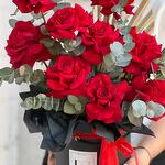 Отличная композиция из Французских роз, выглядит опрятно. Доставка в обозначенное время. Жене очень понравился подарок!