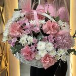 Гортензия - 2 шт. Корзина - 1 шт. Эвкалипт - 1 шт. Роза - 7 шт. Хризантема - 9 шт. Спрей роза - 5 шт.