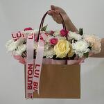Диантус - 1 шт. Пионовидная роза - 1 шт. хризантемы - 2 шт. кустовые розы - 2 шт.