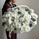 Данная корзина с цветами объединяет в себе 14 веток сочного эвкалипта и 21 белоснежную хризантему. Этот сочетание поражает своей неповторимой красотой и гармонией. Эвкалипт придает композиции свежести и экзотики, а белые хризантемы символизируют чистоту и нежность. Эта корзина с цветами станет прекрасным подарком для любого праздника, добавив в особый день нотку романтики и изысканности.