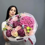 Акцентный пышный евро-букет в розовых оттенках с винной хризантемой Отличный выбор для дня рождения, свидания или сюрприза без повода. 📏 Диаметр букета ~60–65 см 🎁 Красивая упаковка включена