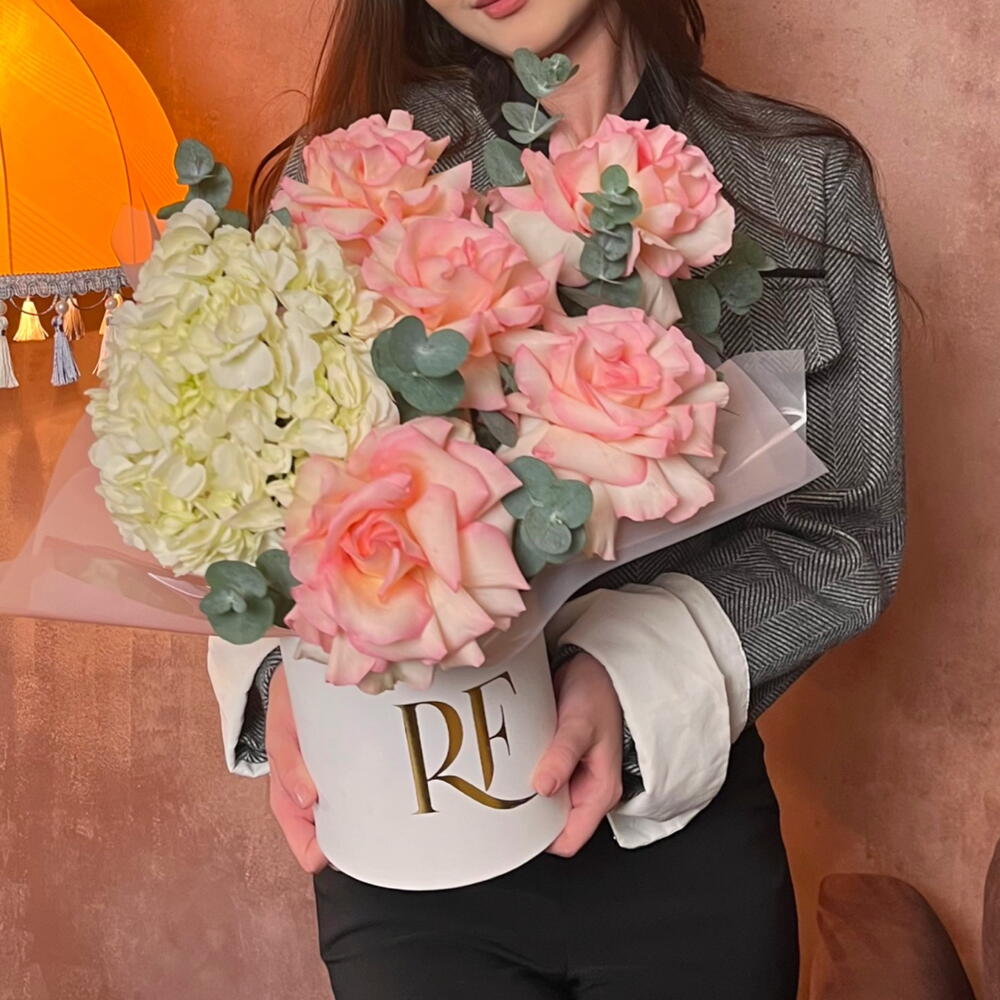 Коробка французских роз и гортензии