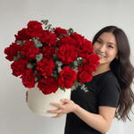 Коробка “Страсть” — это роскошная композиция, созданная для тех, кто выбирает яркие эмоции и безупречный стиль. В элегантной шляпной коробке размещены 31 французская роза насыщенного красного оттенка, дополненные 5 изящными веточками эвкалипта, которые привносят тонкий аромат и визуальную глубину. Пышные, бархатные бутоны создают эффект роскоши и выразительности, а благородная зелень эвкалипта идеально подчёркивает их красоту. Композиция смотрится впечатляюще, дорого и современно — это готовый подарок, который не требует вазы и выглядит эффектно в любой обстановке. Коробка “Страсть” подходит для самых важных случаев: признания в любви, годовщины отношений, дня рождения, романтического сюрприза или любого события, где важны эмоции, внимание и красота. Это подарок, который вызывает восторг с первого взгляда и запоминается надолго.