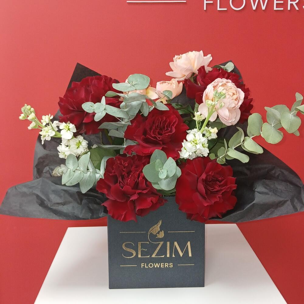 Маттиола - 2 шт. Эвкалипт - 2 шт. розы - 5 шт.