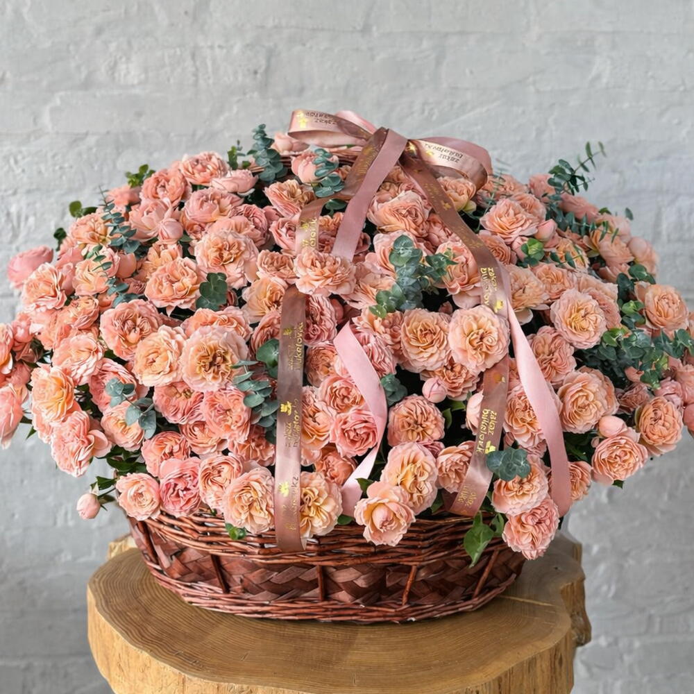 «101 пионовидная спрей-роза» — роскошная корзина, которая говорит о любви без компромиссов. Сто одна пионовидная спрей-роза образуют пышную, невероятно нежную композицию, наполненную восхищением, заботой и эффектом настоящего «вау».