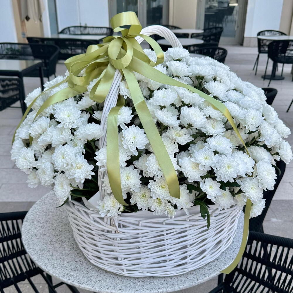 Корзина плетеная - 1 шт. Оазис флористический - 7 шт. хризантем - 47 шт.