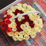 Роза - 55 шт. Оазис флористический - 2 шт. корзина плетеная белая - 1 шт.