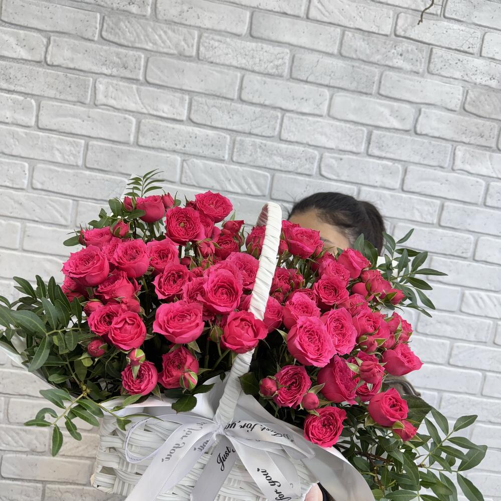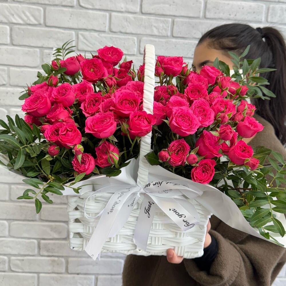 Корзина - 1 шт. Писташ - 4 шт. Лента атласная - 1 шт. Оазис флористический - 1 шт. софия кустовая - 7 шт.