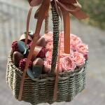 Корзина плетеная - 1 шт. Клубника в шоколаде - 10 шт. спрей роза джульетта - 7 шт.