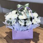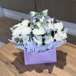 Сумочка комплимент из воздушной хризантемы с эвкалиптом, милый подарок из самых стойких цветов, будет радовать получателя очень долго Собираем только в день заказа, свежие цветы каждый день