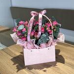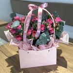 Сумочка комплимент, кустовые розы с эвкалиптом собраны на оазисе Удобная композиция, стильная и стойкая Собираем в день заказа, только свежие цветы