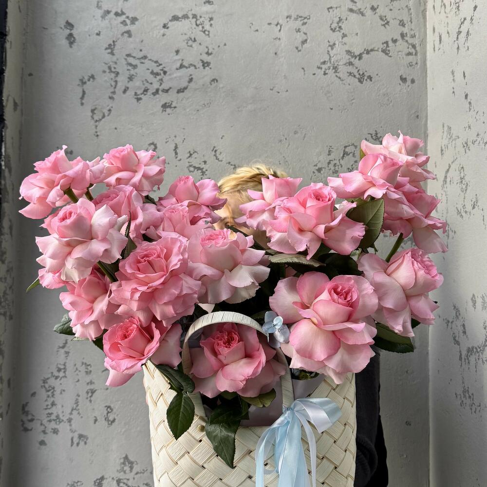 Роскошная композиция из крупных розовых роз, оформленная в стильную плетеную корзину. Воплощает искренность и глубокую симпатию. В составе: элегантные розовые розы премиум-класса с выразительной зеленью. Украшена атласными лентами пастельных оттенков. Подойдет для: признания в любви, годовщины, важного события или эффектного подарка, который точно запомнится. 🌹 Воплощение изысканной романтики.