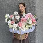 Антуриум - 1 шт. Гортензия - 1 шт. Эвкалипт - 2 шт. эустома белая - 5 шт. джульетта роза пионовидная - 3 шт. эсперанса роза - 7 шт.