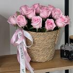 Роза Голландская - 19 шт. Упаковка дизайнерская - 1 шт. Оазис флористический - 1 шт. Корзина ротанговая - 1 шт.