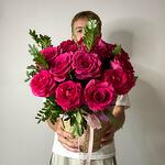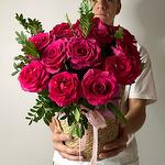 Шикарная корзина из 15 ароматных роз, прекрасно украсит торжественный момент