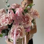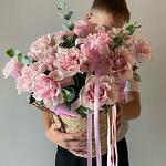 Эвкалипт - 2 шт. Роза - 13 шт. Лента атласная - 2 шт. Корзина плетеная - 1 шт. Оазис флористический - 1 шт. открытка с вашими пожеланиями - 1 шт.