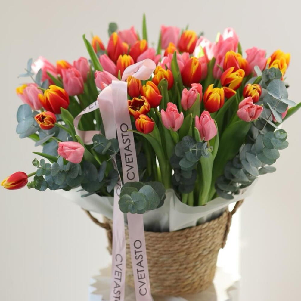Тюльпан - 51 шт. Эвкалипт Микс - 5 шт.