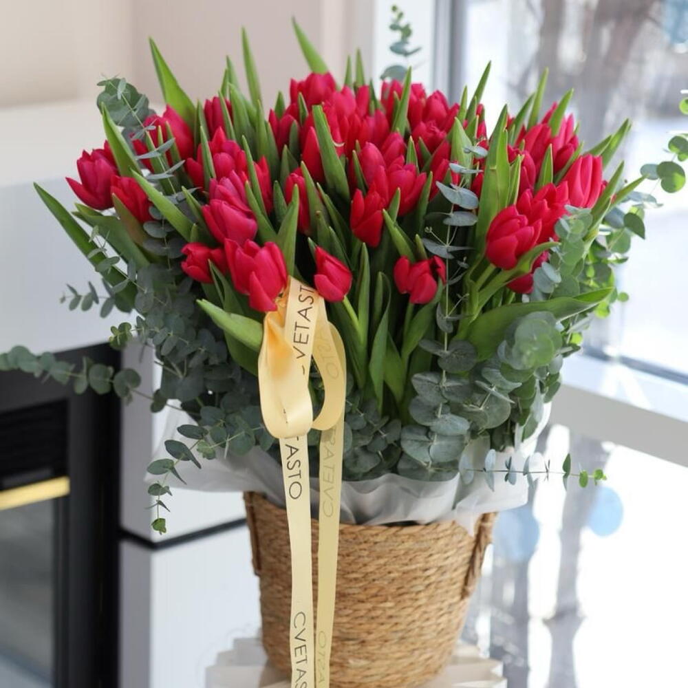 Тюльпан - 51 шт. Эвкалипт Микс - 5 шт.