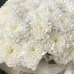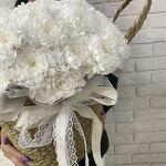 Хризантема белая - 10 шт. ленты атласные - 2 шт. кашпо ротанговое - 1 шт.