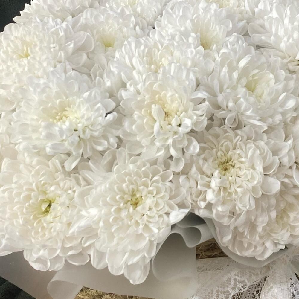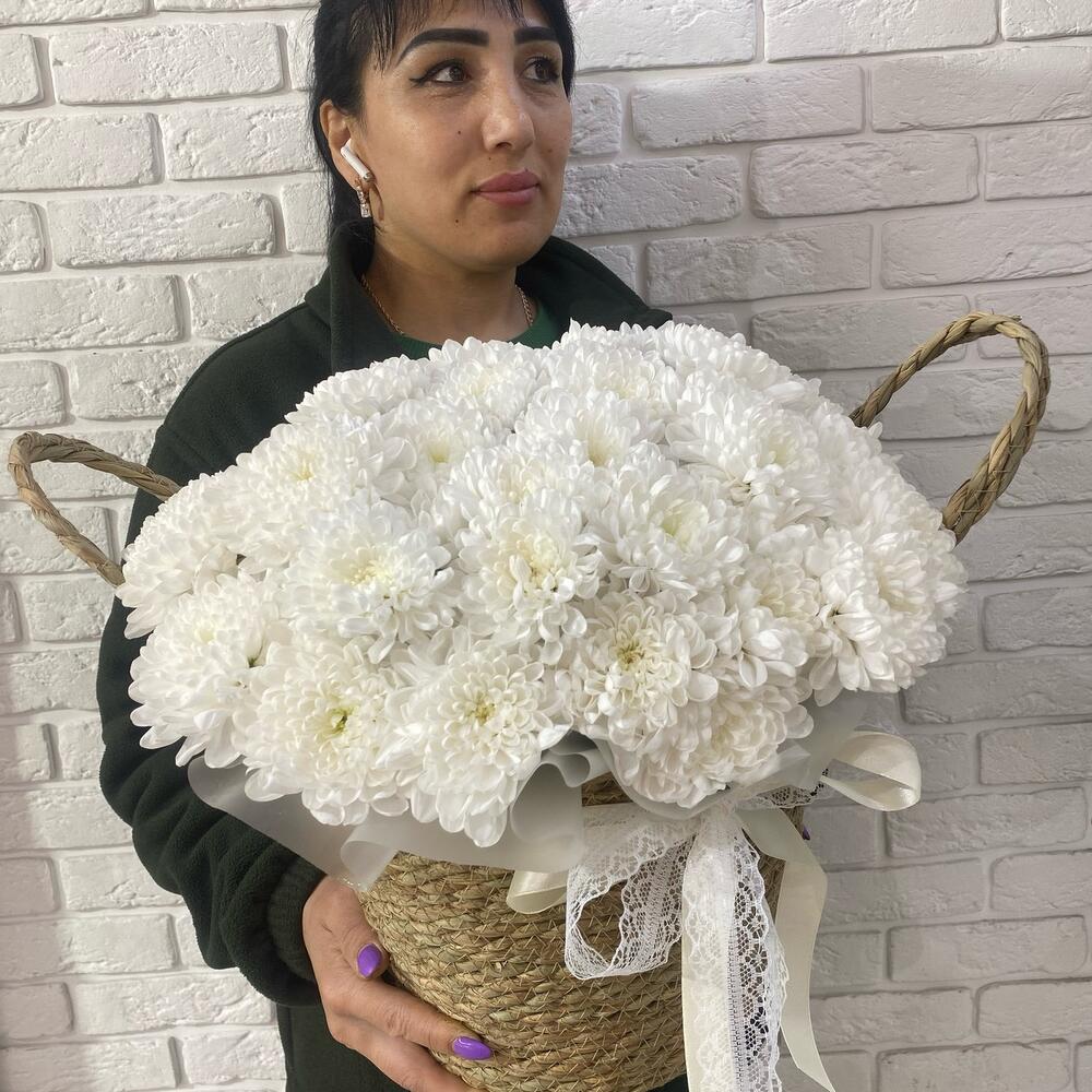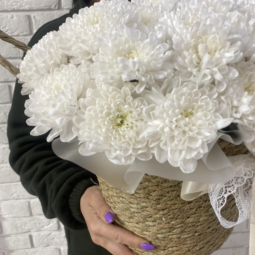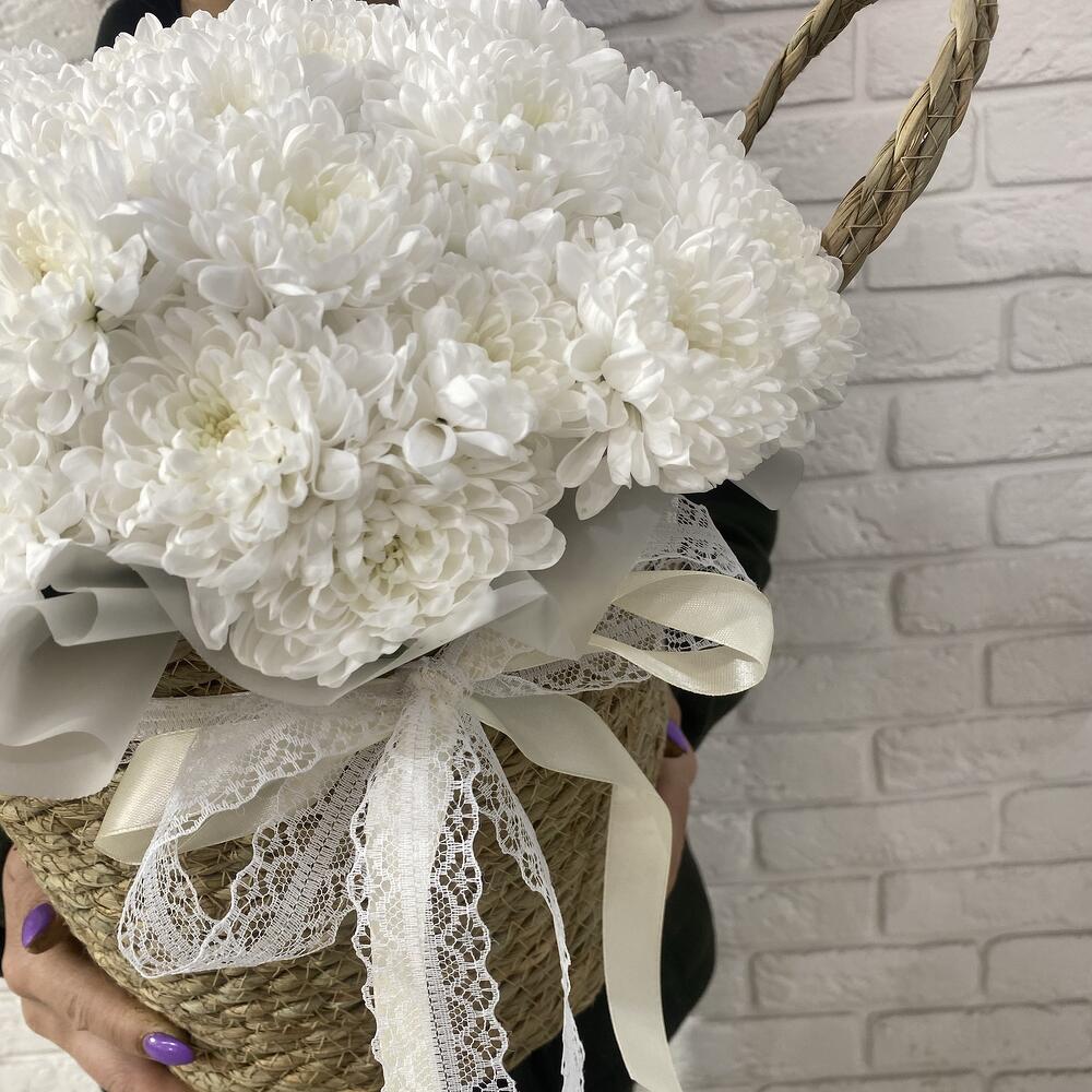 Корзина с белыми хризантемами