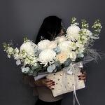 Маттиола - 9 шт. Хризантема - 5 шт. Роза пионовидная - 3 шт. Фаленопсис - 1 шт.