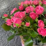 Кашпо плетеное - 1 шт. кустовые пионовидные розы - 11 шт.