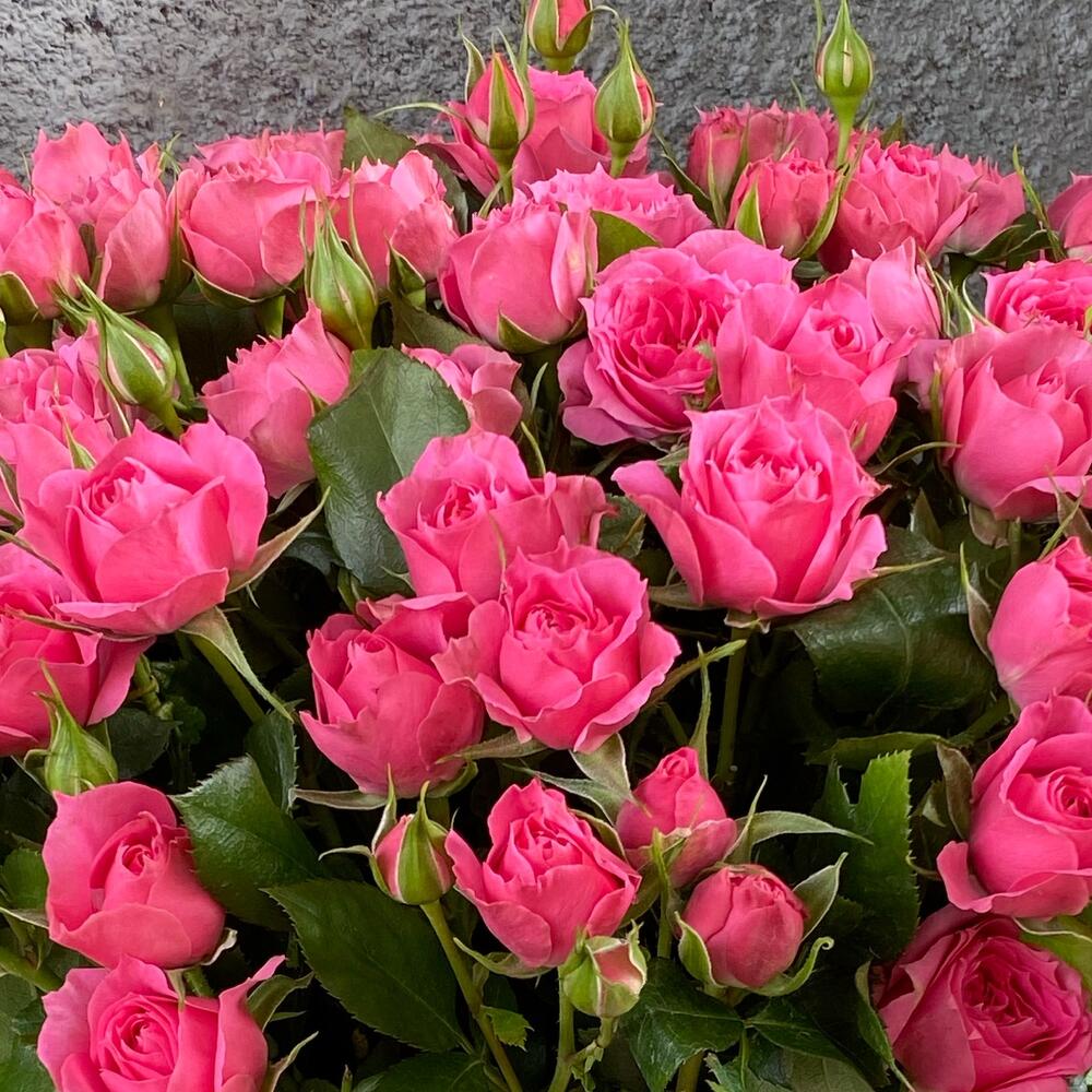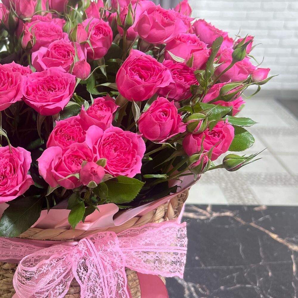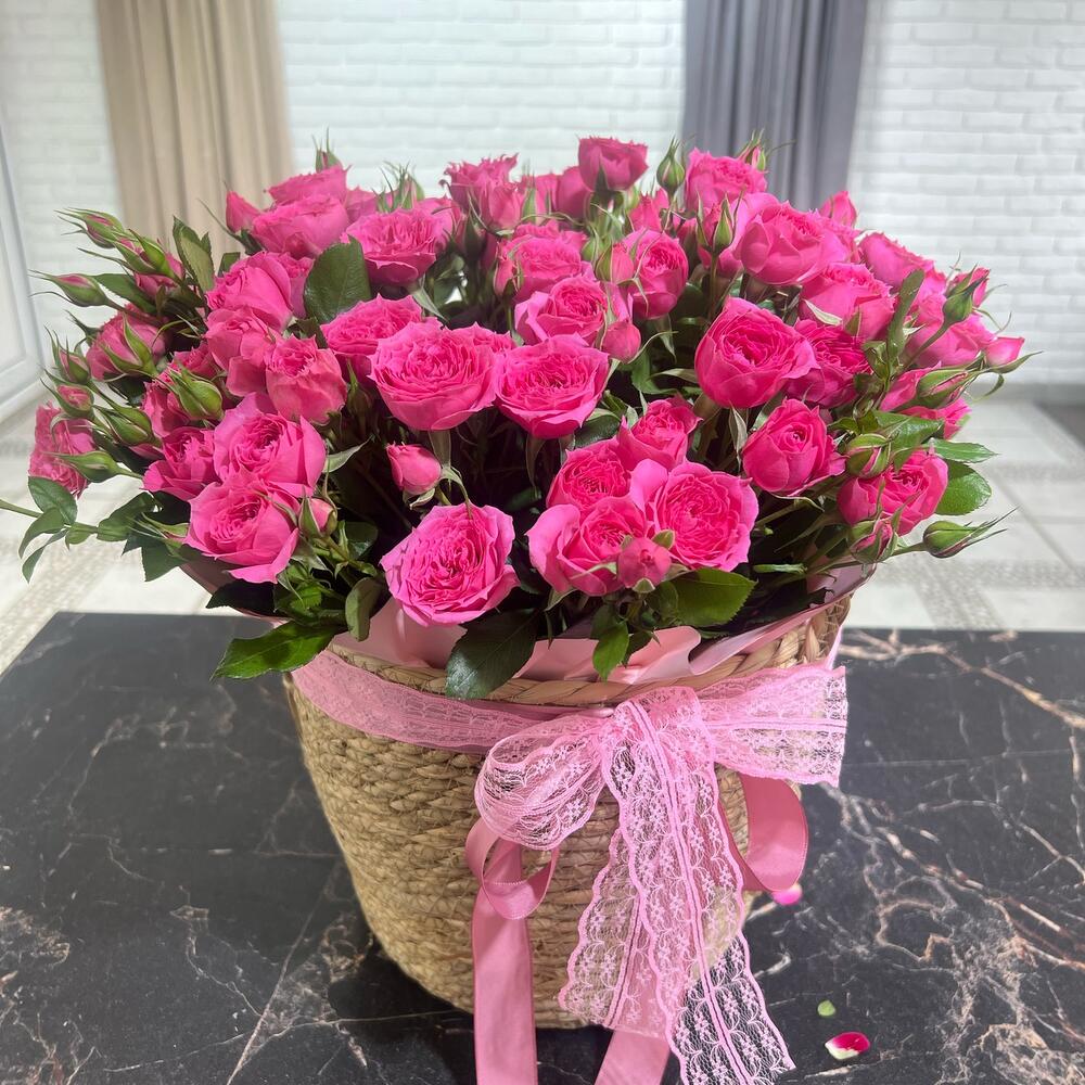 Кашпо плетеное - 1 шт. кустовые пионовидные розы - 11 шт.